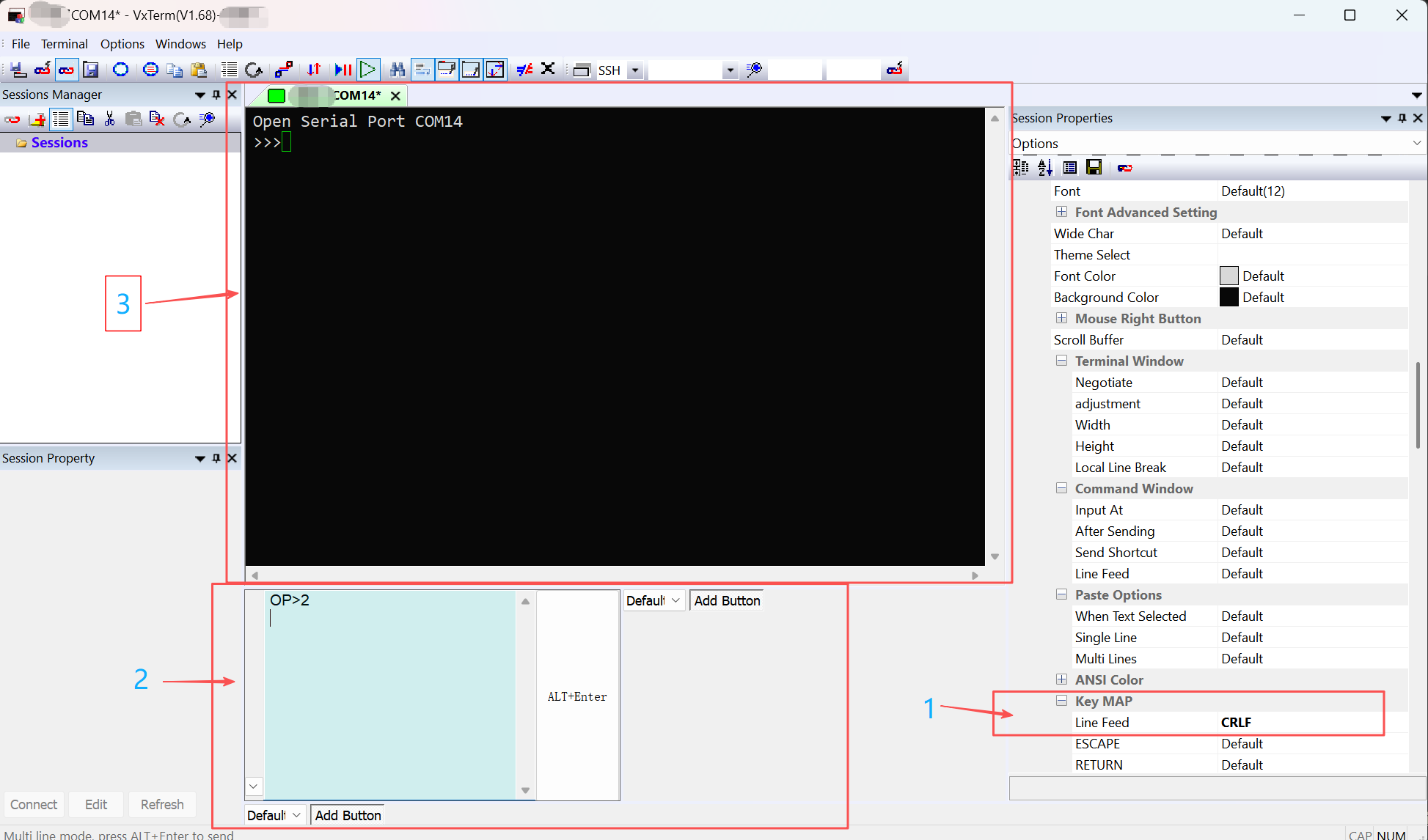 - In Session Properties, find Line Feed under Key MAP and set it to CRLF.